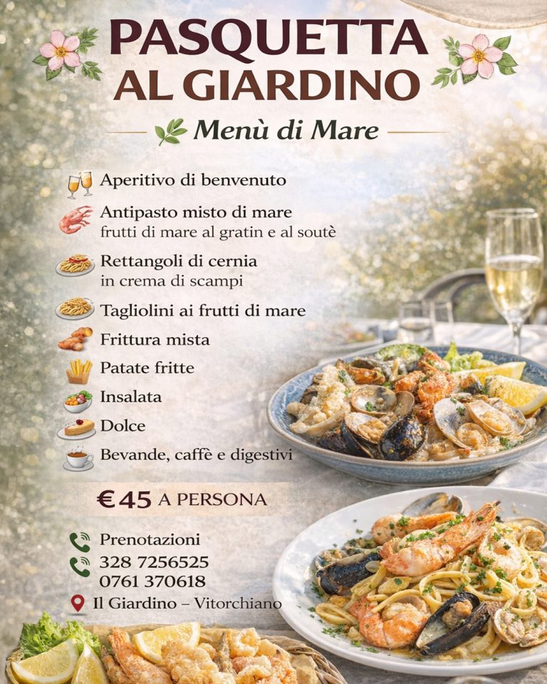 Nelle verdi campagne del borgo medievale di Vitorchiano, al Giardino, potrete godere di una deliziosa atmosfera familiare. Degustare ottime pizze e imperdibili specialità giornaliere, a base di carne e pesce.
